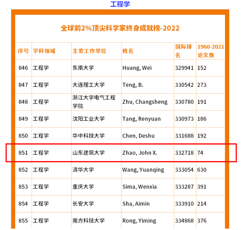 10月10日,美国斯坦福大学发布了“全球前2%顶尖科学家榜单2022”,我校土木工程学院教师赵兴权(Zhao, John X.)教授入选全球前2%顶尖科学家终身成就榜,这是我校教师首次入选该榜单。