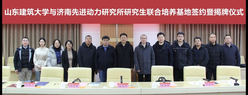 为深化产学研融合,搭建高水平人才培养平台,2025年12月18日,山东建筑大学与济南先进动力研究所研究生联合培养基地签约暨揭牌仪式在山东建筑大学TS202会议室举行。