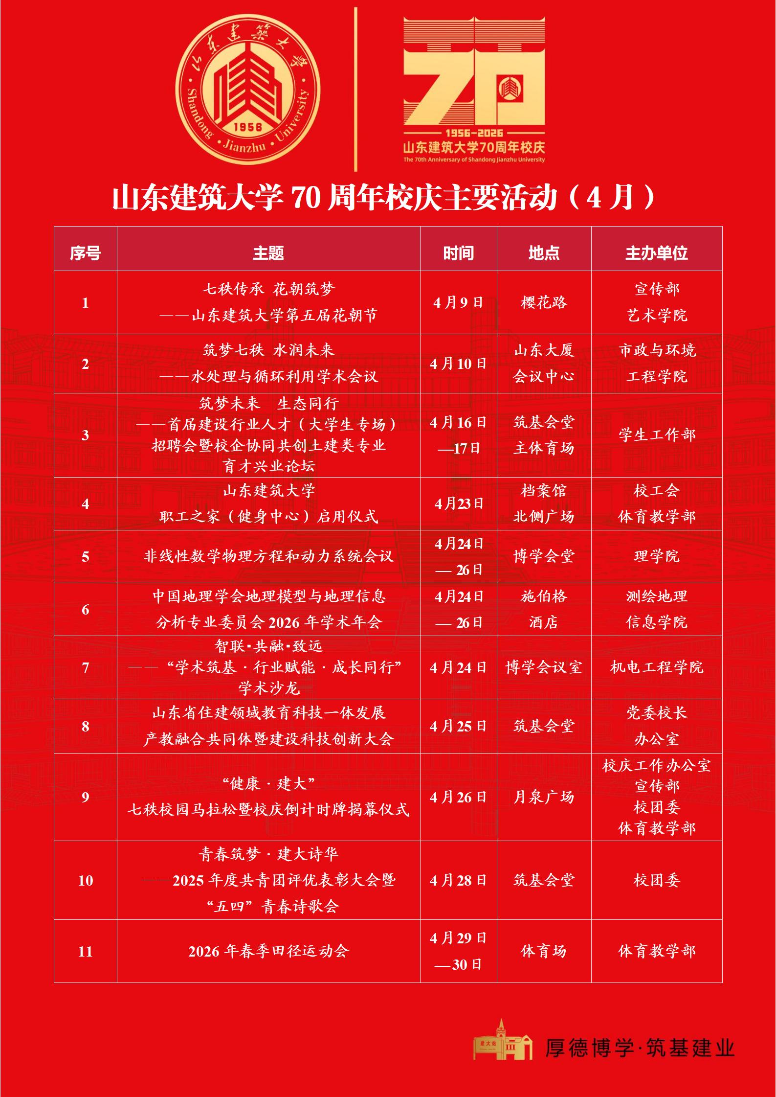 山东建筑大学70周年校庆主要活动(4月)