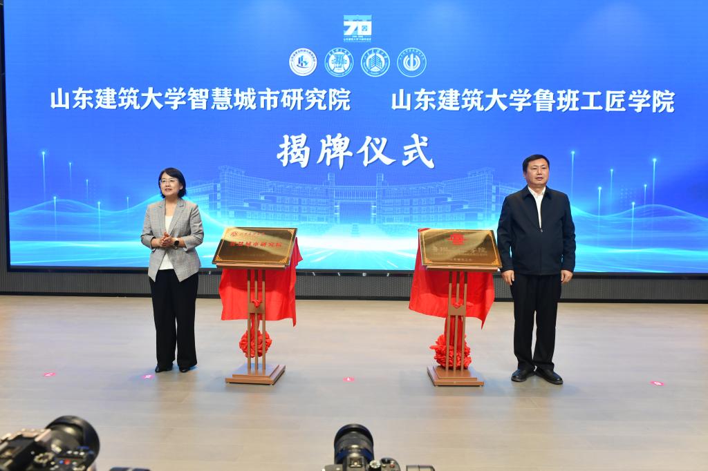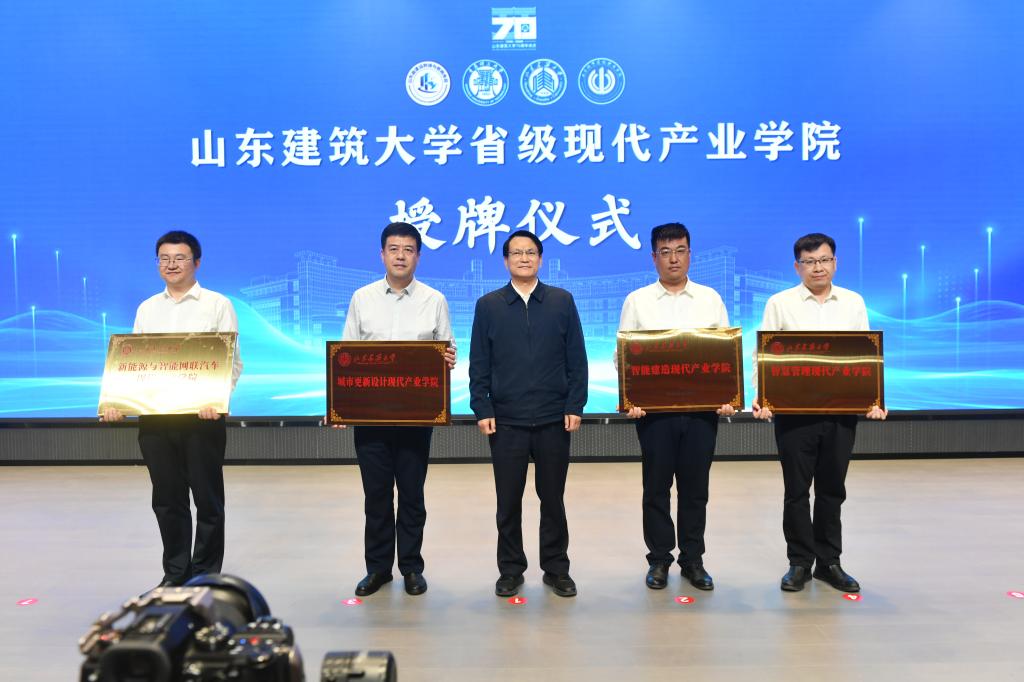 大会举行山东建筑大学智慧城市研究院、山东建筑大学鲁班工匠学院揭牌仪式,并为4个省级现代产业学院授牌。