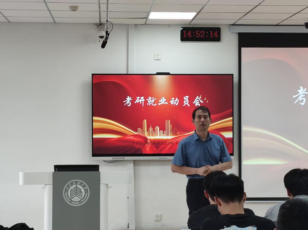 为帮助本科生精准把握考研与就业形势,充分依托学院学科、科研与师资优势规划未来发展方向,9 月 11 日,测绘地理信息学院于产教楼402室召开本科生考研就业动员会。学院院长孟飞担任主讲人,2026届毕业生参会,会议聚焦 “考研规划指导、升学优势解读、疑惑精准解答” 三大核心,为同学们筑牢发展信心、明确行动路径。