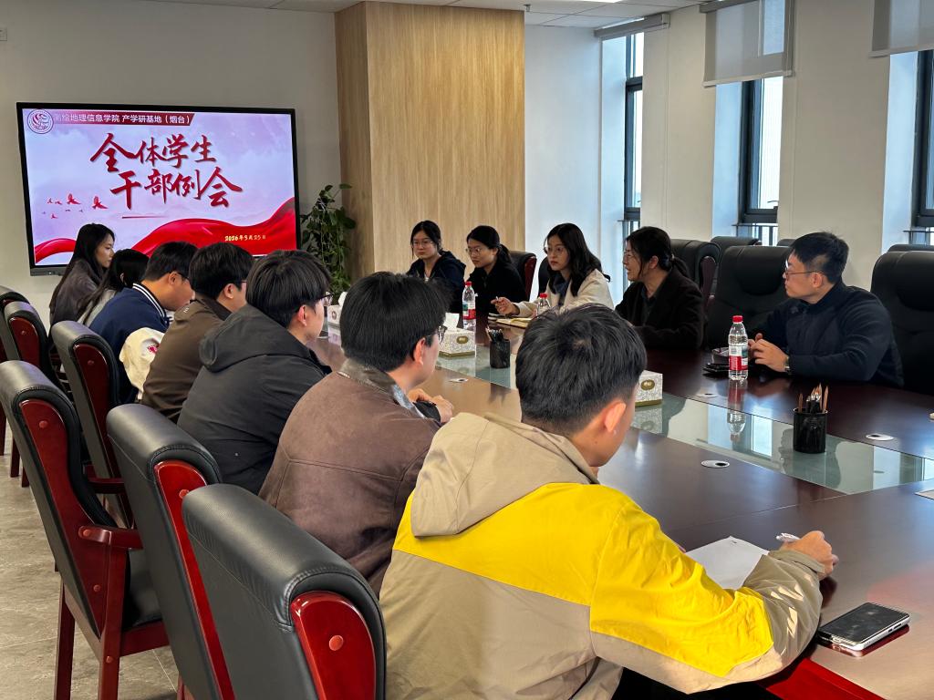 3月25日,产学研基地(烟台)测绘地理信息院召开学生干部工作例会。学院党委副书记臧蓉蓉、团委书记吴长谦、辅导员高一丹出席,全体学生干部参加会议。本次会议围绕新学期学生工作重点任务,聚焦学生实际需求,注重工作实效,旨在进一步发挥学生干部桥梁纽带作用,推动新学期学生工作平稳有序开展。