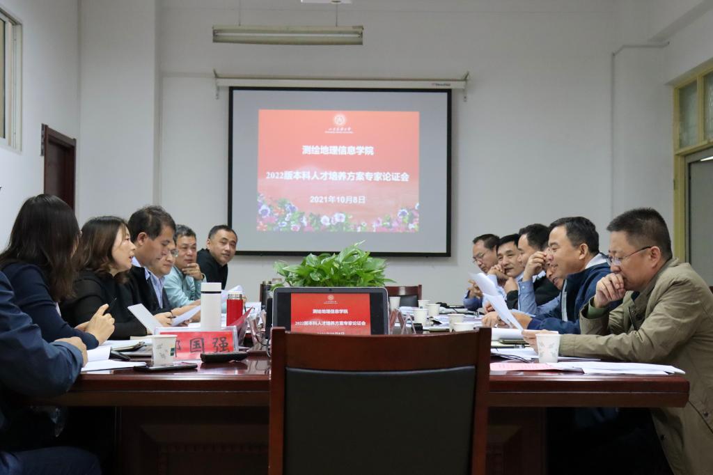 为全面贯彻新时代全国高等学校本科教育工作会议精神,主动适应新时代国家测绘地理信息行业发展对高等教育人才培养的需求,提升学校本科人才培养质量。2021年10月8日,测绘地理信息学院邀请校内外专家13人于逸夫楼202会议室,开展了2022版本科专业人才培养方案论证会议。其中,校外专家5人分别来自山东省国土测绘院、济南市勘察测绘研究院、山东正元航空遥感技术有限公司、山东省测绘地理信息学会和济南市房产测绘研究院等。会议由桑文刚副院长主持,孟飞院长致欢迎辞并对本次修订方案指导思想及重点向各位专家进行介绍。