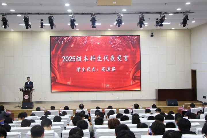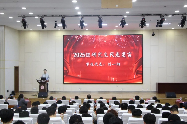高年级学生代表刘承凤、2025级本科新生代表高道睿与研究生新生代表刘一阳先后发言,分别从学业规划、时间管理与科研态度等角度分享感悟,充分展现了学院学子积极向上、追求卓越的精神风貌。新生班主任代表李德伟建议新生要主动适应大学节奏,尽快完成从中学到大学的角色转换;同时应尽早确立学业目标,做好个人发展规划;并鼓励大家积极参与各类活动,在实践中持续锻炼和提升综合能力。