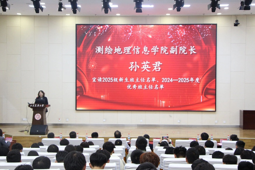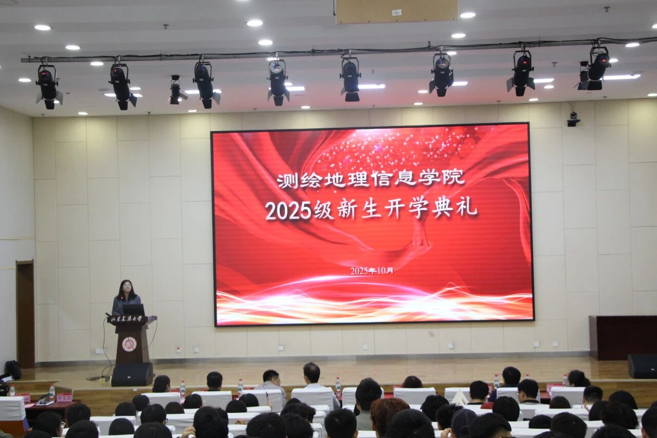 金秋迎新象,奋进续华章。10月15日,测绘地理信息学院2025级新生开学典礼在300人报告厅隆重举行。学院党政领导、各科室主任、新生班主任、优秀班主任、各级辅导员、2025 级全体新生及高年级优秀学生代表出席本次会议。