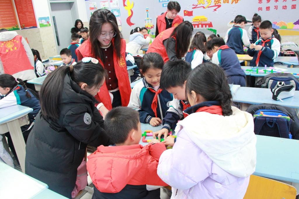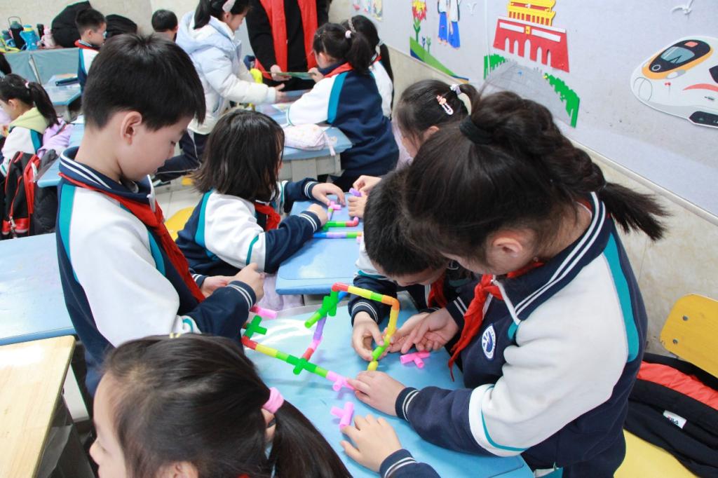 随后,活动进入管道搭建环节。志愿者将全班分组并分发模型玩具。各小组分工协作,投入搭建,从构思到实践,掌握了管道接口原理和结构特性。志愿者在旁细心指导答疑。