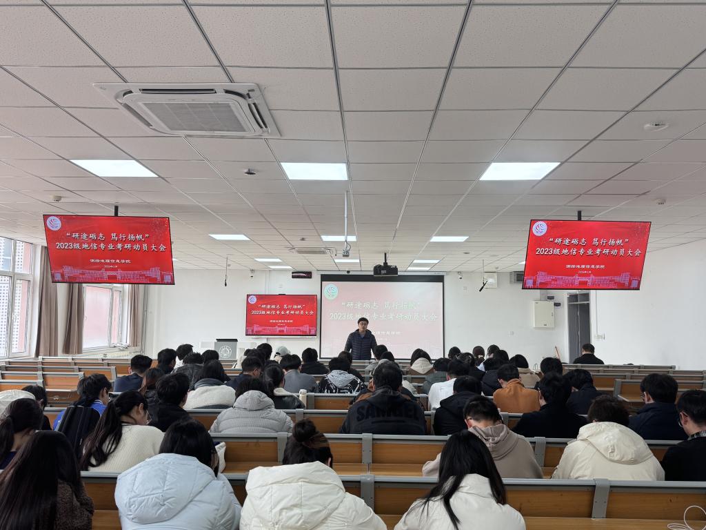 此次考研动员大会,进一步明晰了备考思路、提振了备考信心,为同学们科学考研、精准备考奠定了坚实基础。希望 2023 级地信专业学予以此次大会为契机,脚踏实地、奋勇拼搏,在考研路上笃行不怠、逐梦前行,以优异成绩圆梦理想院校,书写青春奋斗新篇章。