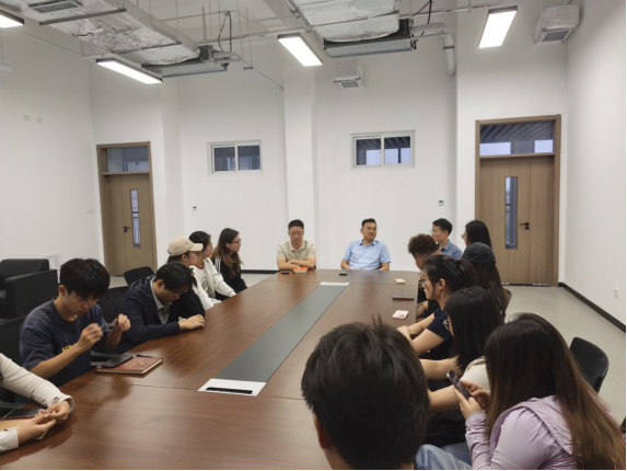 为精准掌握产学研基地(烟台)学生学习生活动态、切实为2026 届研究生毕业生就业提供针对性指导,9月18日下午,学院党委副书记卜德龙、团委书记李涛、辅导员于培虎在烟台基地DC408会议室与学院在烟班委、研究生会代表共同召开座谈会,深入了解学生近况,为毕业生就业保驾护航。