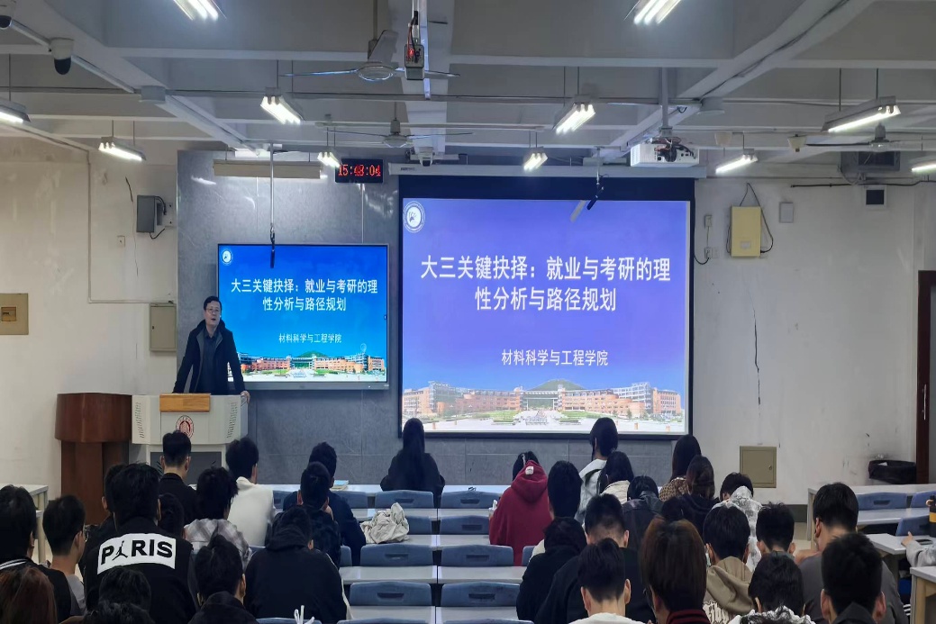 秋意渐浓,初心愈笃。10月16日下午,山东建筑大学材料科学与工程学院2023级材料专业于科技楼219教室召开就业与考研规划主题班会。本次班会由带班辅导员邹仲平主讲,聚焦大三学子“毕业去向”这一核心议题,旨在帮助同学们跳出抉择迷茫,为未来发展锚定清晰方向。