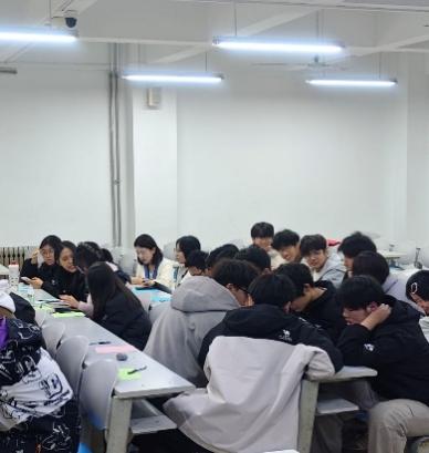 活动以趣味“破冰”环节拉开序幕。同学们用5分钟时间制作个性名片,正面标注姓名,背面书写自我概括词汇,随后佩戴名片就近分组围坐。在1分钟自我介绍环节,大家通过简洁生动的表达分享姓名、专业、爱好等信息,努力让同伴快速记住自己;“滚雪球”记名环节则进一步增进了彼此的熟悉度,现场氛围迅速升温,为后续互动奠定了良好基础。