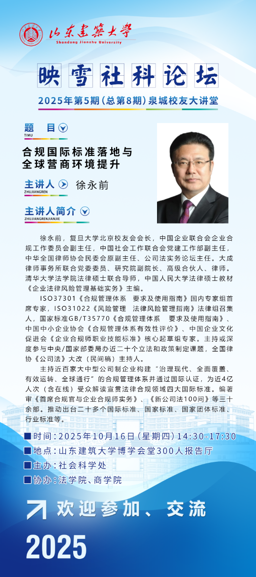 讲座预告|徐永前:合规国际标准落地与全球营商环境提升