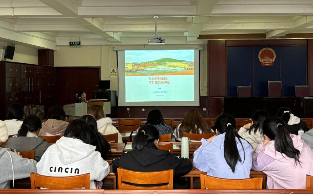 讲座伊始,杨烁老师以学生综测评定细则为基础,强调专业成绩与实践创新的重要性,解析了竞赛对综测加分、评奖评优的关键作用,并介绍了本科生可参与的英语类、人文社科科研类竞赛及优势。同时,分享了优秀学长学姐的保研案例与竞赛经验,指导学生如何组队协作、选择优质课题,还提供了众多寻找资源的方法和技巧,为学生提供了清晰的竞赛与学业规划思路。