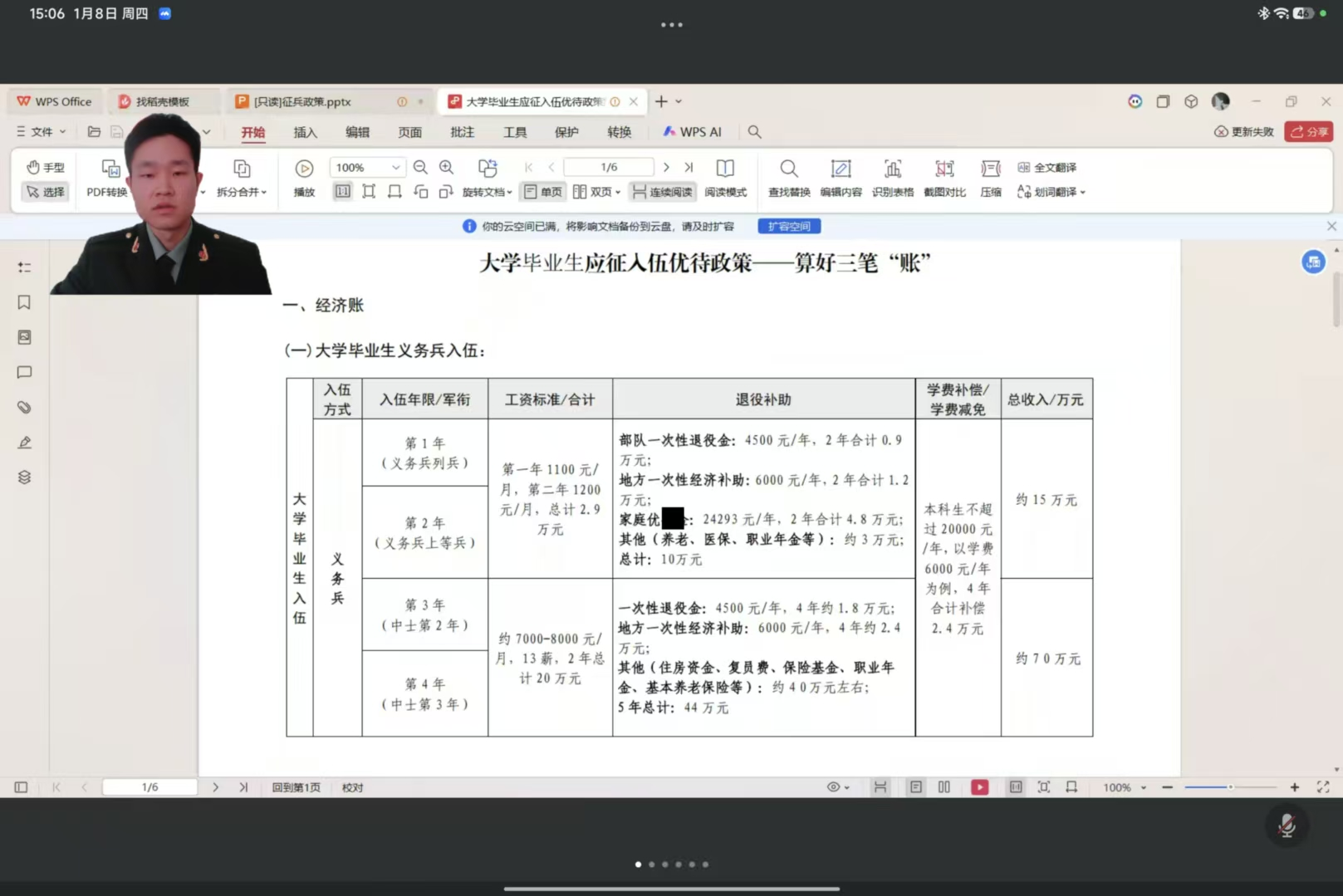 为响应国家征兵号召,鼓励青年学子投身国防建设,1月8日,法学院举办征兵入伍线上宣讲会。活动邀请退役复学大学生郭致远主讲,解读参军政策、分享军营经历,吸引全院众多学生参与。