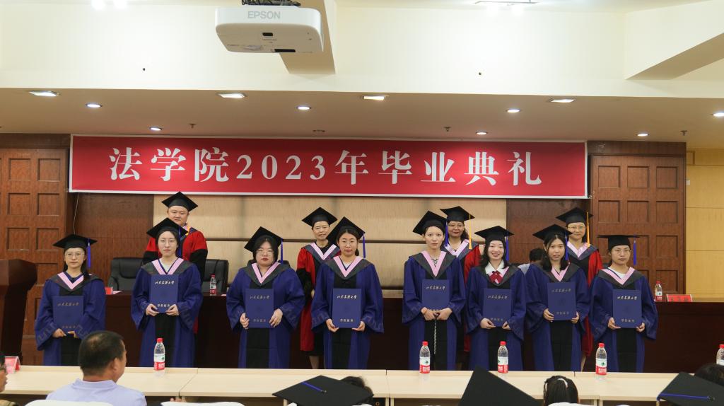 雄壮的国歌声中,毕业典礼正式开始。党委书记刘国勇宣读2023年省级优秀毕业生、校级优秀毕业生名单;副院长左敏宣读2023年毕业生名单。学院学位评定分委员会成员代表为毕业生们颁发学位证书、拨穗正冠,送出真挚祝福,合影留念。