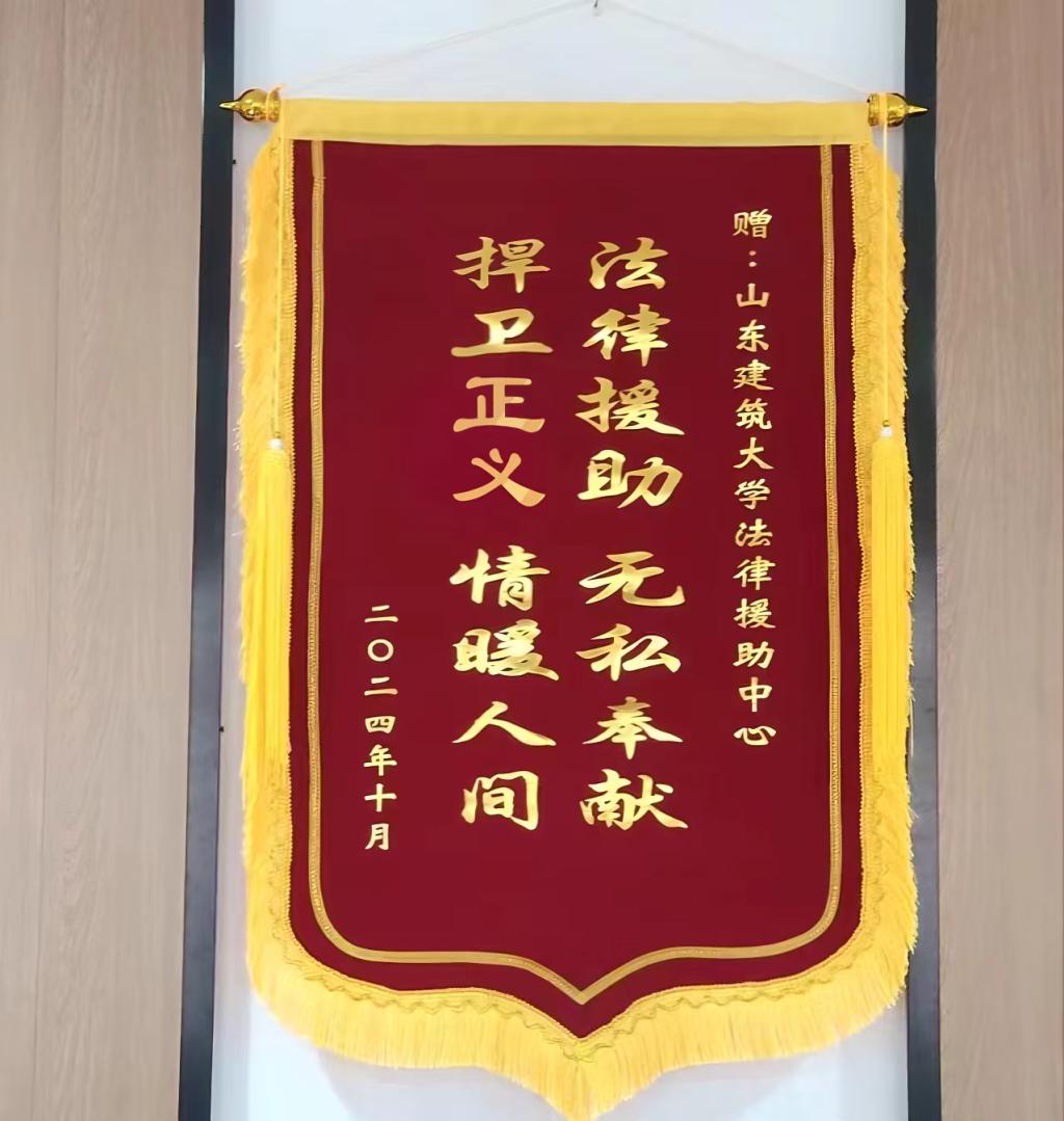 近期,山东建筑大学法律援助中心为我校程老师提供法律咨询,协助程老师顺利解决纠纷,维护其合法权益。12月11日下午,程老师特将一面写有“法律援助 无私奉献 捍卫正义 情暖人间”的锦旗赠予法律援助中心,以表谢意。程老师表示,法律援助中心的志愿者们热心、细致、专业,期待同学们未来可以成为优秀的法律人才。