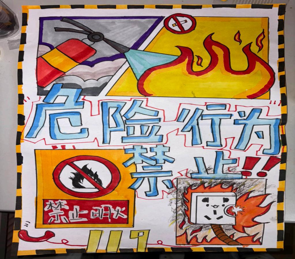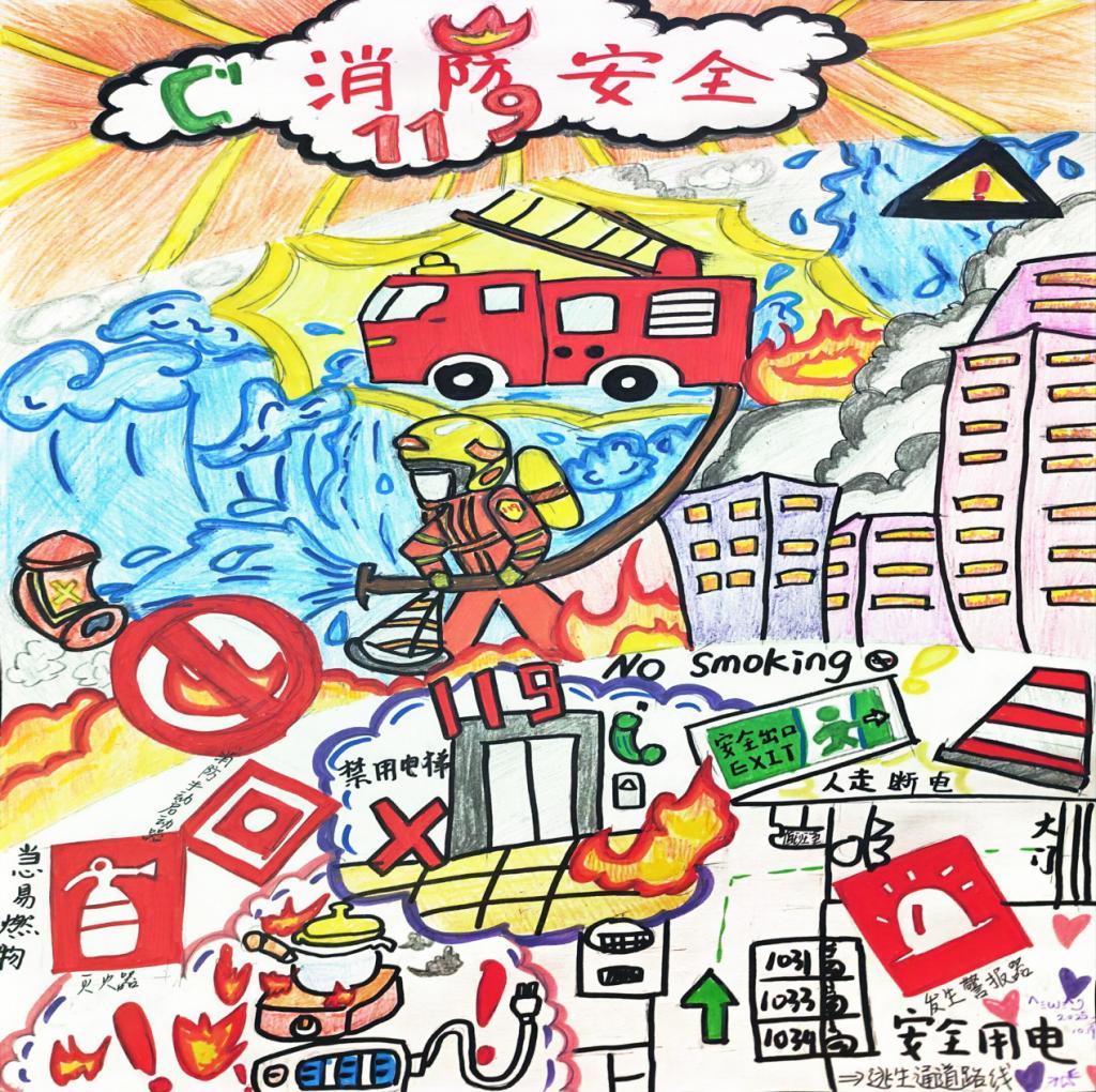 本次活动以消防警示和安全为主题,参赛者巧用线条、色彩与文字勾勒出火灾危害场景、消防器材图标及使用方法等方式,直观传递“隐患险于明火”的警示。参赛者在创作过程中主动查阅消防资料、交流安全要点,提升了艺术表达能力,并掌握了基础消防知识,进一步强化了安全责任。