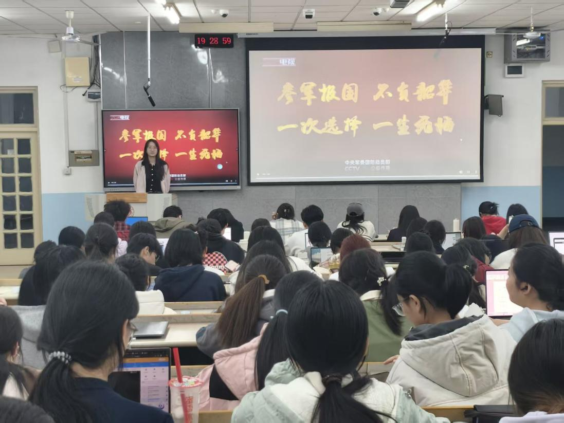 为积极响应国家征兵号召,激发青年学子的爱国热忱与强军担当,10月28日,法学院组织学生集体观看中央军委国防动员部发布的全国公益宣传片《参军报国,不负韶华》和微电影《逐梦青春》。以影片为桥,传递强军爱国正能量,引导同学们感悟“强国必须强军,军强才能国安”的深刻内涵,树立“文武兼修,法维正义,从军卫国”的青春志向。