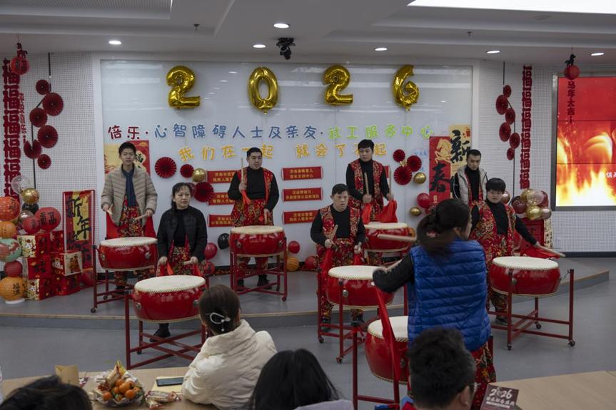 倍乐新春联欢会在气势磅礴的民族大鼓声中拉开帷幕。来自济南市慧爱残疾人服务中心、济南市乐橄儿智障人士服务中心、济南星神特殊儿童关爱中心、济南市信望爱残疾人服务中心、济南市建达社会工作服务中心、济南市星星缘心智障碍者关爱中心、济南市历下区春晖星儿家长支持中心、帅妈星园、济南市历城区智光启能中心共9家机构的表演者们,以歌声、舞蹈、沙画、琴声等多元艺术形式,自信登台,精彩演绎,展现了不凡的才华与积极向上的精神风貌,赢得了全场持续的热烈掌声。联欢环节中,多轮抽奖互动不断点燃现场气氛。山东省文化市场发展协会与济南猎狼公益救援队作为本次活动的支持单位,不仅为盛会提供了全程保障,更贴心捐赠了丰富实用的奖品,将温暖与关怀送至每一个参与家庭。