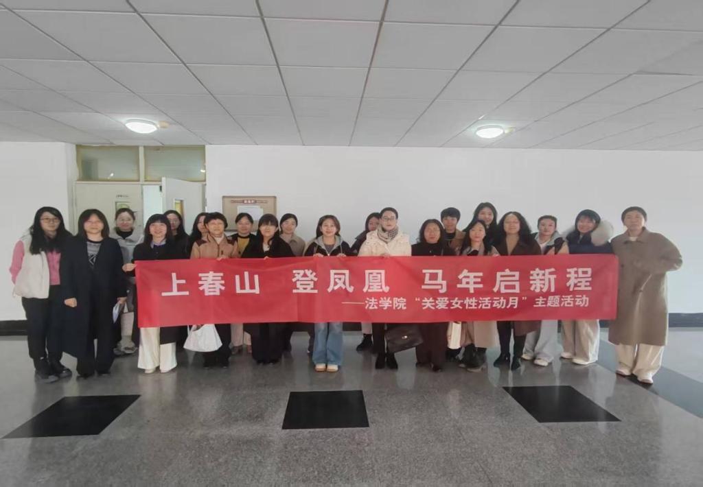 阳春三月,春意渐浓。为庆祝“三八”国际妇女节,扎实开展“关爱女性活动月”系列活动,丰富女教职工文体生活,3月19日,法学院组织女教职工前往凤凰山公园,开展以“上春山,登凤凰,马年启新程”为主题的户外登山活动。