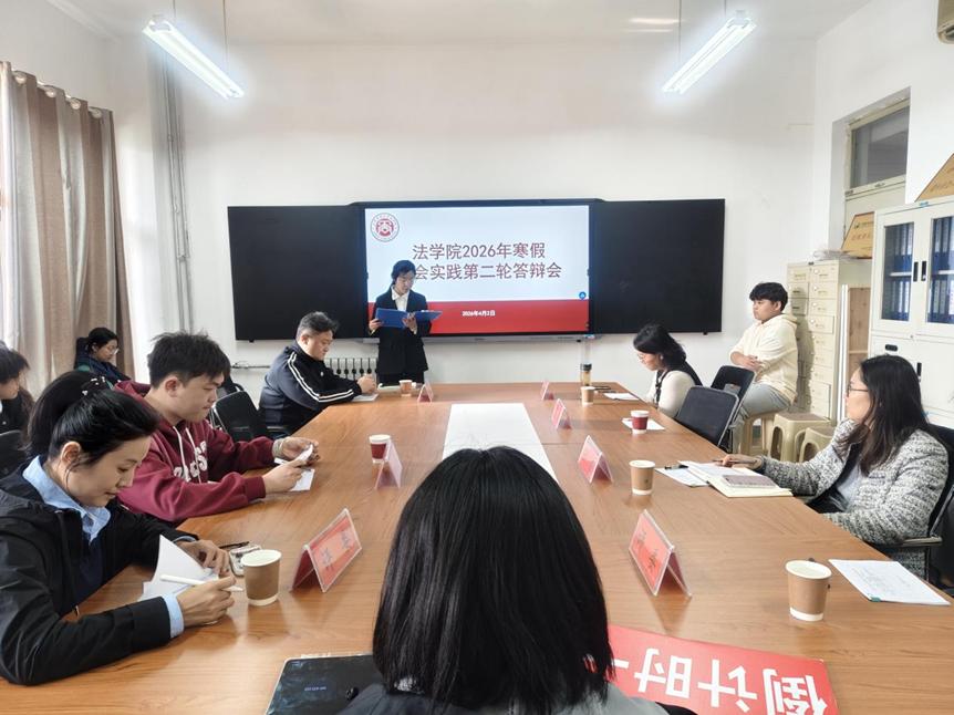 为进一步展示与评选寒假社会实践成果,总结实践经验,4月2日,法学院举办2026年寒假社会实践第二轮答辩会。经第一轮严格评审后晋级的14支实践团队参与本次答辩,实践团队指导老师于志云、刘艳飞、孙琳、张庆强、董蕾红、梁亮、李淼担任评委。
