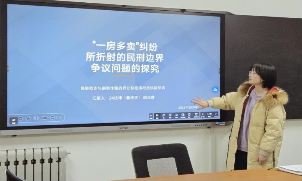 胡卓琳以《“一房多卖”纠纷所折射的民刑边界争议问题的探究》为题,聚焦房地产交易中“一房多卖”这一典型失信行为带来的法律定性难题,全面剖析了民事欺诈与刑事诈骗的界分困境。她指出,实体认定中“非法占有目的”的司法推定挑战与程序衔接不畅,是导致案件悬置、裁判不一、权利救济迟滞的核心痛点。为此,她系统提出了推动实体认定标准精细化与程序衔接机制制度化的“双重治理”路径,并提出针对性建议,推动此类案件的治理思路从个案结果应对向事前规则引领与程序保障前移。