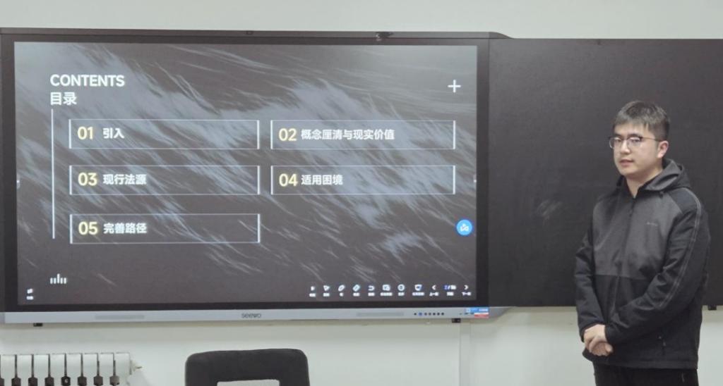 3月19日晚,法学院第二十八期“筑法研律”学术报告会在外文楼312会议室成功举办。法学院刘成安教授应邀莅临指导,报告会由法学院第六届研究生会学创部干事崔伟琛主持。2024级法律硕士研究生胡卓琳、孟德泷、董晓龙、朱铖轩担任本期报告会主讲人,2024级与2025级部分研究生参与。