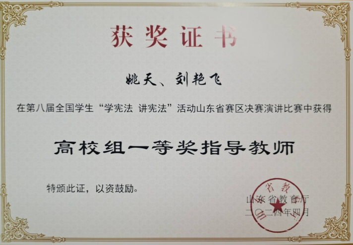 第八届全国全国学生“学宪法 讲宪法”活动山东省赛区决赛高校组一等奖指导教师