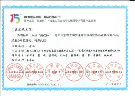“挑战杯”山东省大学生课外学术科技作品竞赛获奖