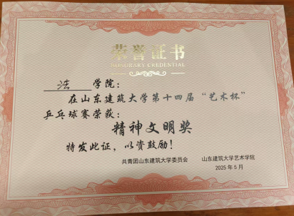 山东建筑大学第十四届艺术杯乒乓球赛精神文明奖