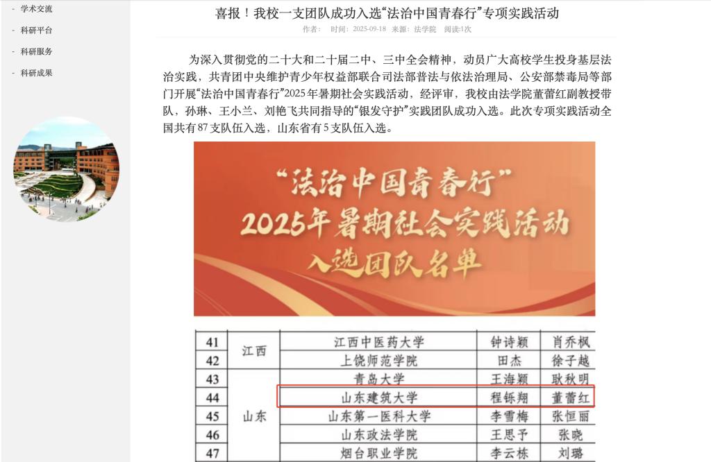 入选“法治中国青春行”专项实践活动