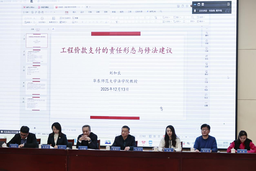 华东师范大学法学院教授刘加良以《工程价款支付的责任形态与修法建议》为题进行主旨发言,他聚焦工程价款支付责任形态,指出建工纠纷案件逐年递增且处理复杂,核心难题在于价款支付责任形态的认定,详细解析了转包违法分包、挂靠情形下实际施工人主张工程款的多种责任形态,针对建筑法修改,他建议明确违法情形认定、否定实际施工人优先受偿权、提高违法成本,同时重视商事调解在纠纷解决中的作用。