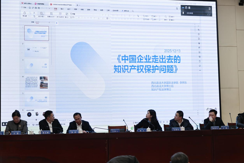 西北政法大学国际法学院教师李照东以《中国企业走出去的知识产权保护问题》为题进行发言。通过数据指出我国企业在海外频遭侵权诉讼、商标抢注及337调查等风险,强调必须建立知识产权预警机制、加强海外布局与维权能力,并呼吁行业协会与企业共同提升专业服务与协同应诉水平,系统构建涵盖研发、管理、团队与风险防控的全链条知识产权保护体系。