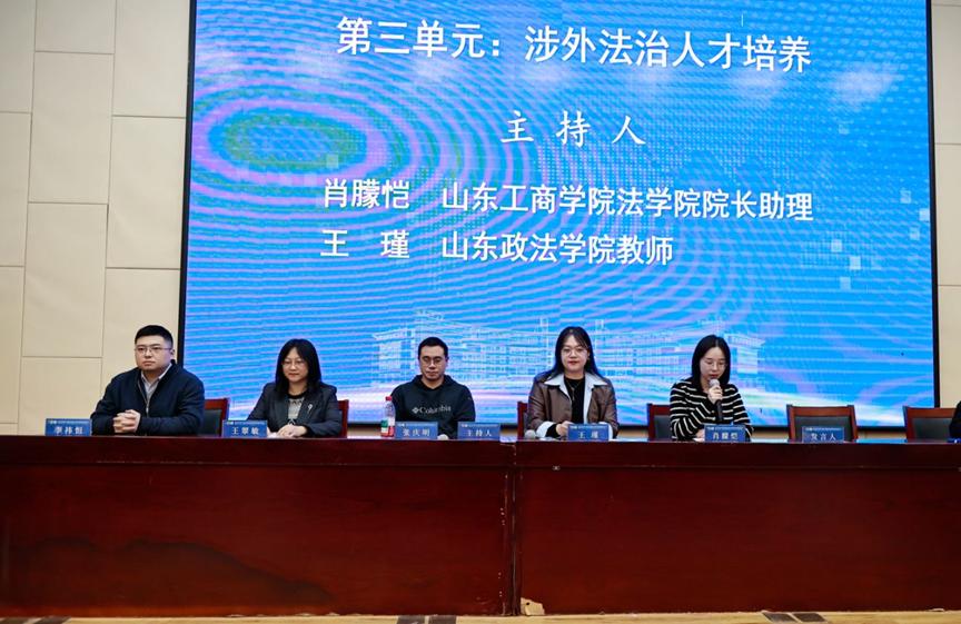 第三单元围绕“涉外法治人才培养”,由山东工商学院法学院院长助理肖朦恺与山东政法学院教师王瑾主持。