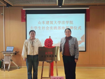 10月21日上午,山东建筑大学法学院与景和山庄社区举行社会实践基地签约揭牌仪式。景和山庄社区党支部书记杨梅、法学院团委书记王小兰、辅导员孙琳及学生代表参会。