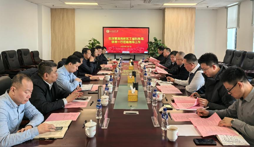 在烟台基地,邱立平、成强一行同烟台黄渤海新区工信科技局及科教创新区管理服务中心等有关负责同志进行了座谈,双方围绕黄渤海新区产业布局、校地双向赋能、产学研深度合作等方面进行了深入交流和探讨。烟台黄渤海新区科教创新区管理服务中心党组书记、主任于彤、黄渤海新区工信科技局党组成员、副局长周世忠以及有关处室负责人出席座谈会。