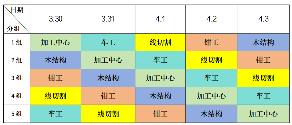 3、实习内容:加工中心、木结构、车工、线切割、钳工。