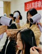 在互动体验区,老师们亲自上手尝试吹发、编发、盘发,沉浸式感受造型乐趣;活动现场还设置了产品体验与纪念品发放环节,为每一位女性师生送上温暖与祝福。专业摄影师现场拍摄“最美瞬间”形象照,定格自信优雅的动人时刻。