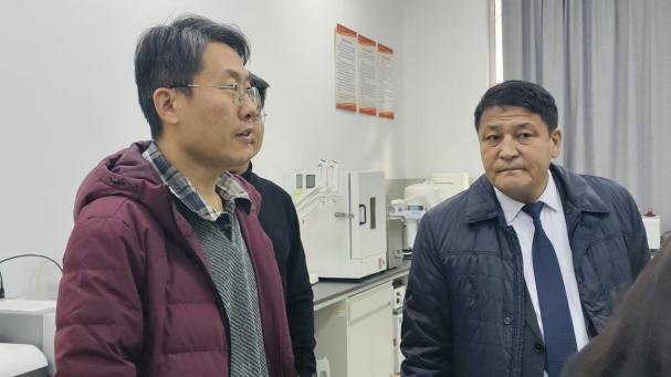2025年11月26日,乌兹别克斯坦塔什干化工技术大学生物技术系教授 Nortoji Khujamshukurov一行3人访问山东建筑大学,就交流合作事宜进行推进。Nortoji Khujamshukurov教授一行首先前往市政与环境工程学院重点实验室、资源与环境创新研究院环境工程菌研发实验室进行了实地调研,了解了我校水质净化与污水处理方面的科研条件与发展成果。Nortoji Khujamshukurov教授对实验室仪器设备的先进程度给予高度肯定,并与实验室师生就中乌水处理发展现状、污水净化标准、菌藻种类的筛选与应用等相关问题进行了深入探讨。