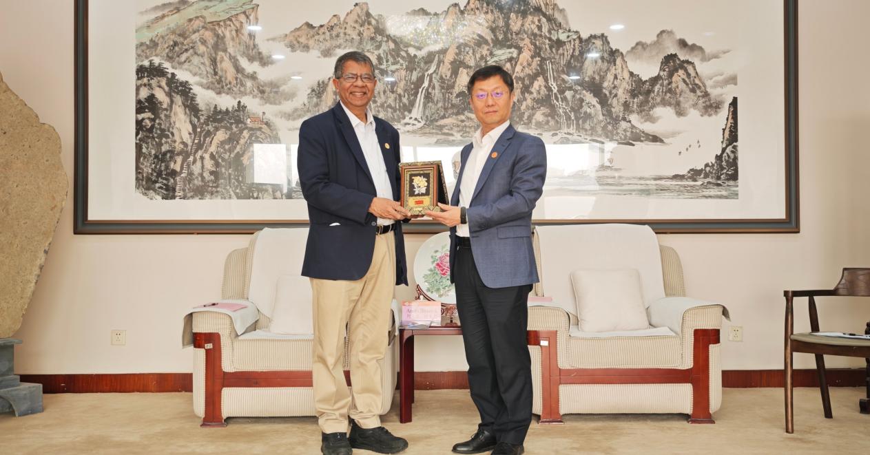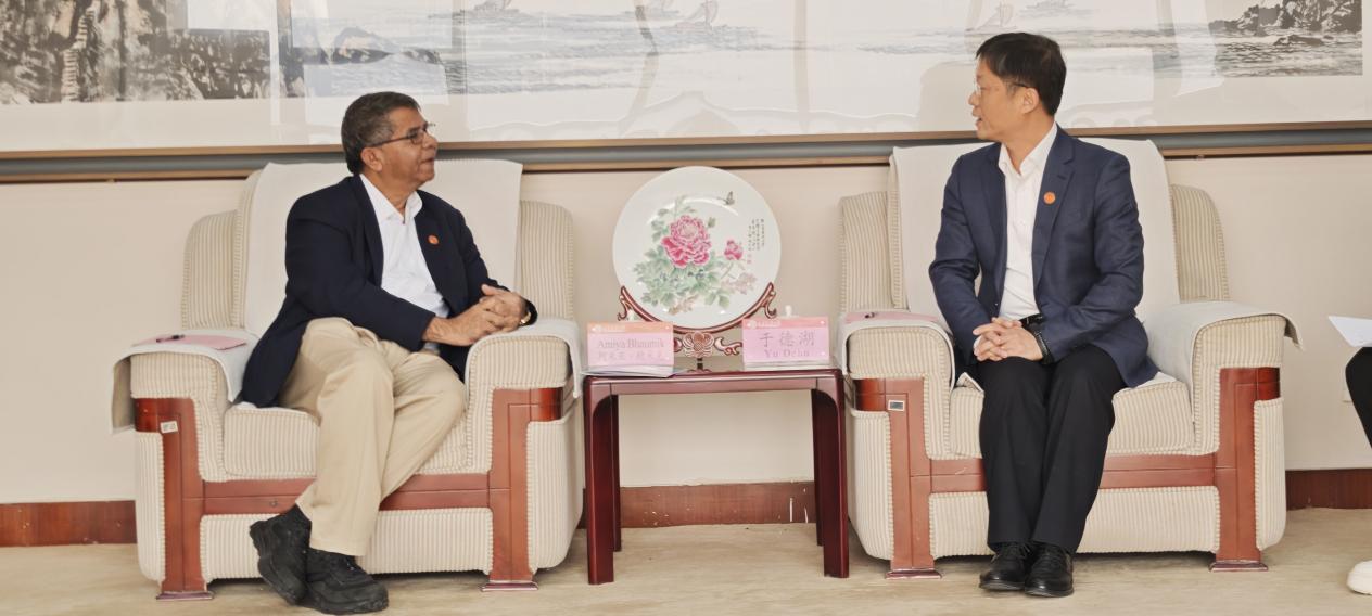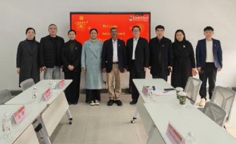 2025年12月19日,马来西亚林肯大学学院(Lincoln University College)代表团访问山东建筑大学。山东建筑大学党委副书记、校长于德湖会见了林肯大学学院阿米亚·鲍米克(Amiya Bhaumik)校长一行,国际交流合作处以及商学院相关人员参加了会见。