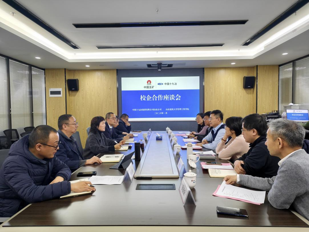 双方首先观看了中国十九冶集团及山东公司企业宣传片。之后,冯华介绍了中国十九冶山东公司的发展建设情况以及业务框架,表达了企业当前在骨干培养、实习招聘、产学研合作等方面的需求,希望以此次交流为契机,进一步推动校企交流合作。邵明辉代表学院介绍了学院发展历程、人才培养、学科建设、学生就业等有关情况,希望双方在原有基础上进一步深化全方位合作,打造资源共享、价值共创、发展共赢的校企合作新范式。会上,与会人员围绕当前行业人才需求、学生实习实训、课程体系共建及科研项目合作等议题进行了深入交流。双方一致认为,在喜迎山东建筑大学建校70周年、中国十九冶集团成立60周年之际,双方应建立常态化的互动机制,进一步推动产学研深度融合,在人才培养、技术创新与就业服务等方面开展更加紧密、更具实质性的合作,共同为培育符合社会需要的高素质专业人才贡献力量。