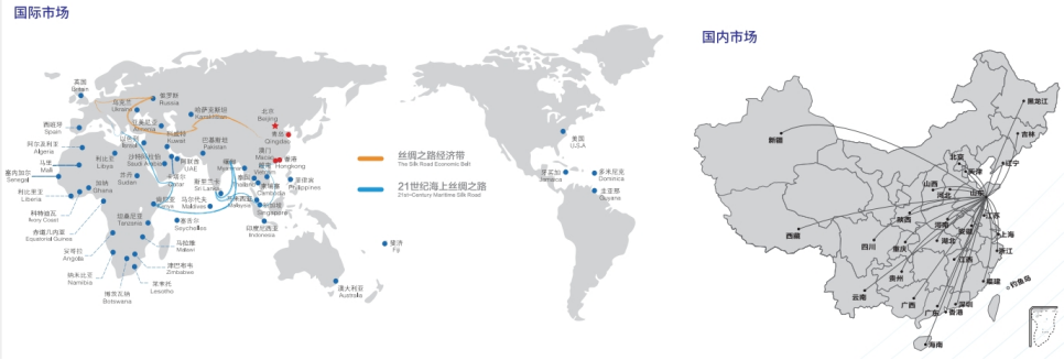 总部位于美丽青岛,以青岛市、埠外(国内)、海外“三分”业务布局,在国内20多个省/市/自治区,设有300余家分子公司,实现了从本土化入手向区域化拓展的经营格局。