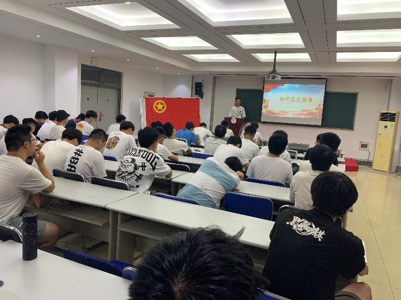 活动伊始,优秀退役复学生代表土木193班朱晓宁同学,结合人民军队的发展历程和自身的部队服役经历,声情并茂地向大家讲述了中国共产党救国救民劈波启航、南昌起义打响武装斗争第一枪、红军“跟党走”万里长征、坚守阵地的“大功连”共产主义战士等红色故事,号召同学们勇于做“两个一百年”和中华民族伟大复兴的参与者、贡献者、见证者,以实现中华民族伟大复兴为己任,不负时代,不负韶华,不负党和人民的殷切期望,保持与党的历史使命同心同向同行。