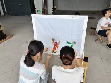为提高防疫知识宣讲效果,团队成员先后前往山东省文化馆、济南市文化馆、济南皮影戏、千佛山景区等地进行非遗文化调研,探索非物质文化遗产助力防疫知识宣讲的有效方式。经多方比对和讨论后,团队确定以皮影戏作为此次宣讲活动的主要形式。经过反复打磨、讨论后,队员们向村民呈现了一出精彩的皮影戏,用皮影讲述了西游记中师徒四人遭遇新冠病毒肆虐人间,为救民众于水火前往西天取得“防疫真经(防疫知识)”的故事。精彩的表演让现场观众掌声不断。