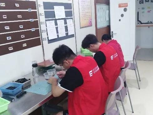 7月12日,管理工程学院“守望阳光”关爱残疾人社会实践团于济南市残联公益机构“我的兄弟姐妹爱心驿站”开展实践活动。志愿者们以组装工件零件的方式帮助残疾人群获取薪资报酬,并将在后续实践中帮助解决现存的手工皂、编织篮等手工品滞销问题。