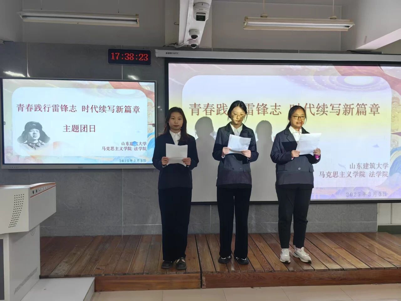 为弘扬新时代雷锋精神,强化青年学子思想政治引领,3月3日,山东建筑大学马克思主义学院与法学院联合举办“青春践行雷锋志 时代续写新篇章”学雷锋主题团日活动。深刻感悟雷锋精神的思想内涵与时代价值,鼓励青年做雷锋式的大学生,以赤子之心映韶华,用雷锋精神铸青春。马克思主义学院团委书记王晓华、法学院团委书记王小兰、辅导员李天语和孙琳参加活动。