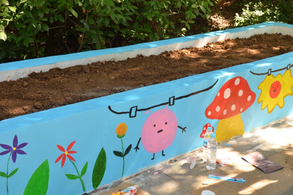 在活动筹备阶段,学生团队围绕“减塑限塑,绘说文明”核心主题推进工作。从元素的创意构思到色彩搭配的反复调试,到优化绘画细节,最终敲定与社区场景高度适配的彩绘方案:主视觉用手绘布袋、回收标志等元素凸显减塑主题,色彩贴近社区环境;留空白互动区,让社区居民从看客变主角,以创作者身份参与进来,用画笔留下专属印记。