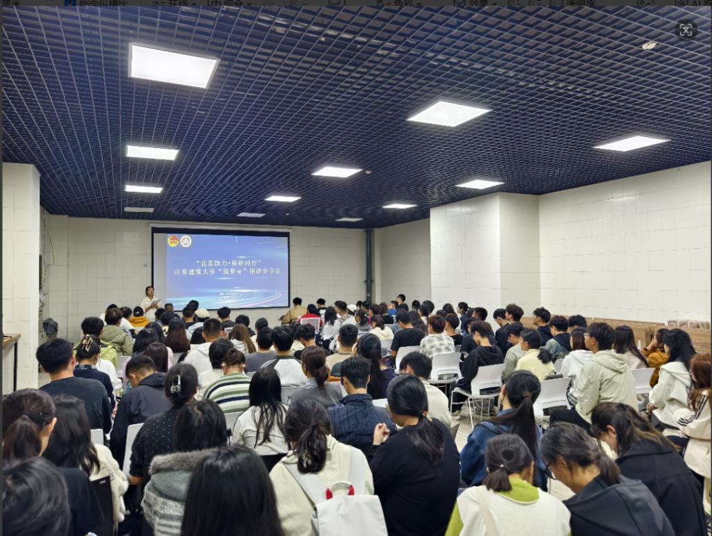 为落实学校以赛促学、以学促研育人理念,进一步帮助各年级学生汲取竞赛备战与科研深耕经验,2025年10月10日19点,山东建筑大学团委(创新创业学院)依托“映雪求知”大学生科技文化节品牌,在大学生活动中心340成功举办“筑梦π”竞赛助力・保研同行分享汇。