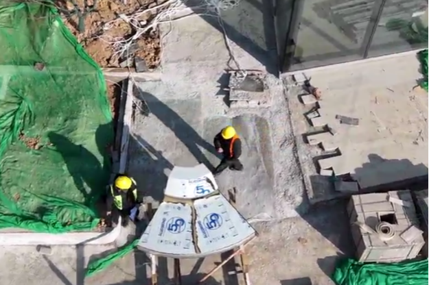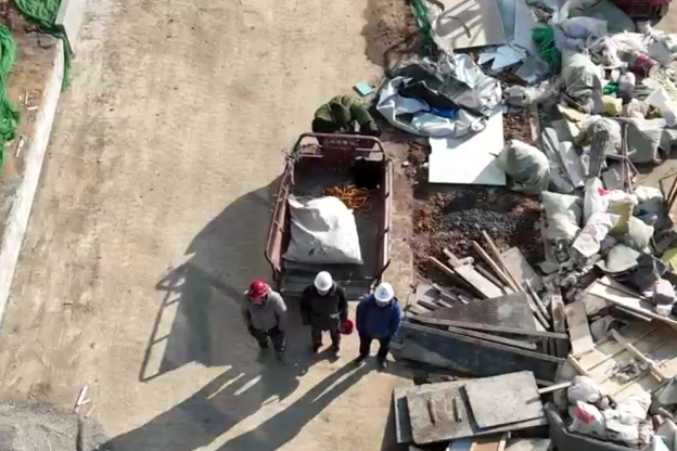 针对施工现场范围广、高空盲区多等监管难点,实践团队现场演示了无人机摄像技术在安全巡检中的应用。随着旋翼的轰鸣声,无人机腾空而起,将复杂的施工全景实时传回显示终端。团队成员讲解了如何利用高分辨率影像,进行安全帽反光衣穿戴情况及人员摔倒情况的抓拍,展现了现代化视觉感知技术,在提升工地监管效率、降低人工巡检风险方面的巨大潜力。