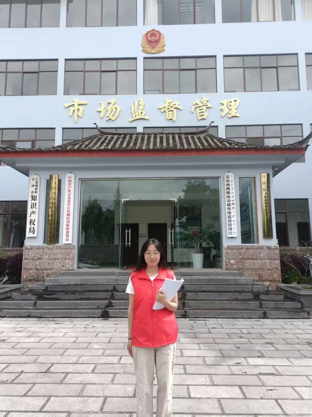 响应号召奔赴西部,初心如磐扎根基层。大学期间的法学专业学习,让王銮深刻认识到法律在社会治理中的重要意义,也让她萌生了到基层践行法治理念的想法。当西部计划招募信息发布后,她主动响应“到祖国最需要的地方去”的号召,毅然告别济南的亲友,跨越山河来到丽江玉龙。经过四天集中培训,她快速熟悉市场监管执法流程、当地风土人情及工作重点,也深刻体会到基层执法的责任与重量——每一项任务都关乎群众衣食住行,每一次履职都承载着群众的信任。