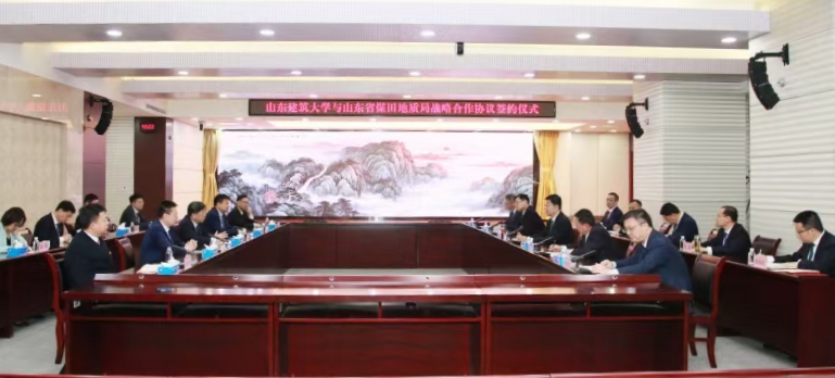4月24日,山东建筑大学与山东省煤田地质局战略合作协议签约仪式在山东省煤田地质局举行。山东省煤田地质局党委书记、局长范宇新,山东建筑大学党委书记杨景波出席仪式并致辞;山东省煤田地质局党委副书记张玉洪主持仪式,党委常委、副局长徐志强、李小彦,山东建筑大学党委委员、副校长邱立平、王清标,资源与环境创新研究院院长、日本工程院院士陈飞勇出席。